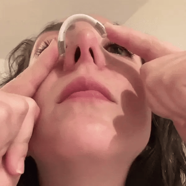 Asegúrate de que el área de la nariz esté limpia y seca antes de la aplicación para evitar que la tira se desprenda. Simplemente lávate la cara y luego seca bien la zona nasal. Retira la tira de su respaldo y colócala centralmente sobre tu nariz, presionando firmemente hacia abajo para asegurarla. Esta rápida preparación ayuda a mantener la posición de la tira para una eficacia durante todo el día o toda la noche.